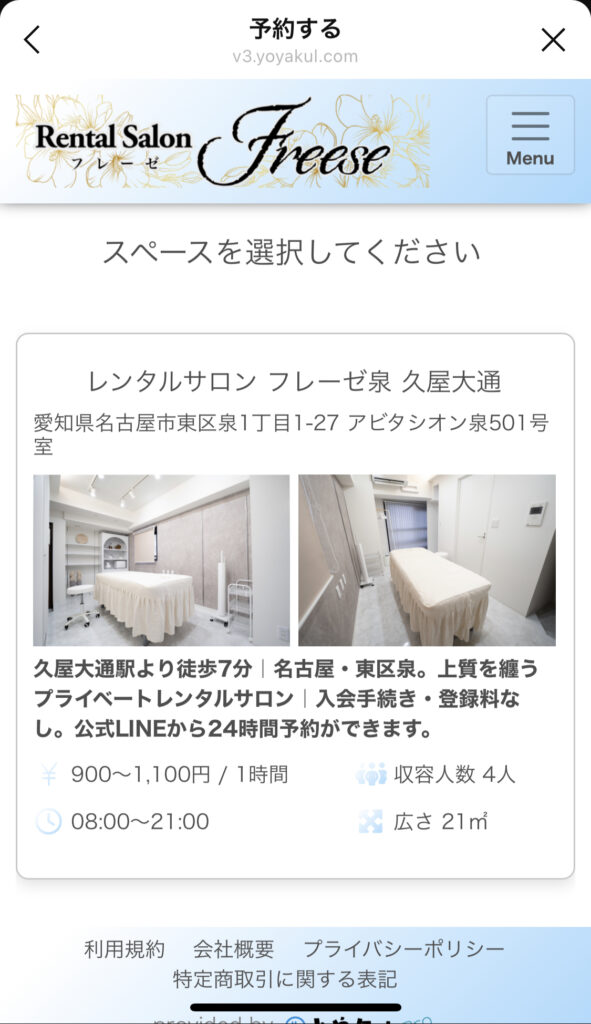 ご予約は 公式LINE にて承っております。クレジットカード決済対応です。