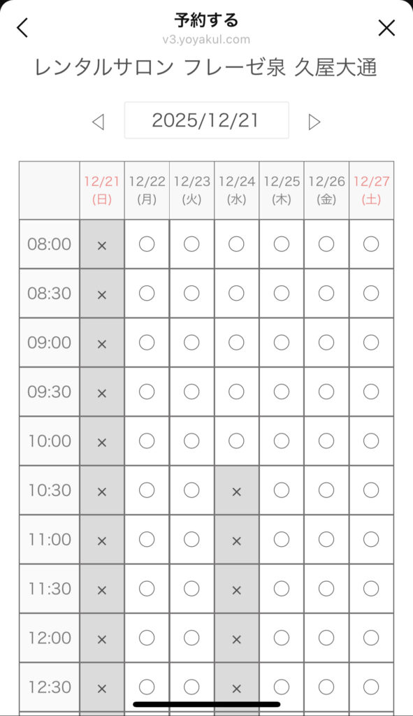 ②予約するスペースを選び、希望日時に空きがあればその日時を選びます。