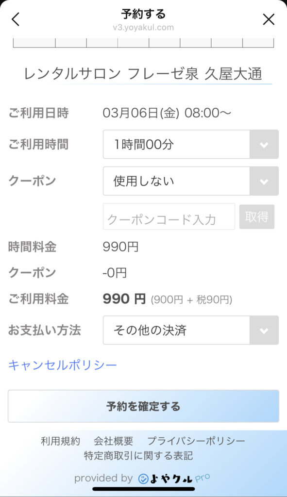 ③お名前・連絡先・クレジット情報を入力し、予約します。