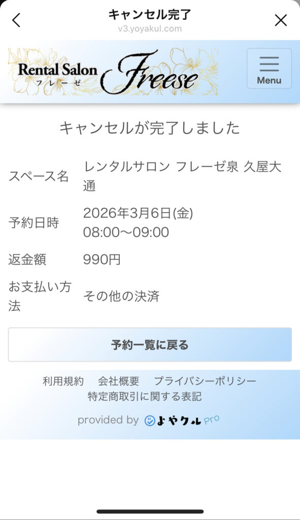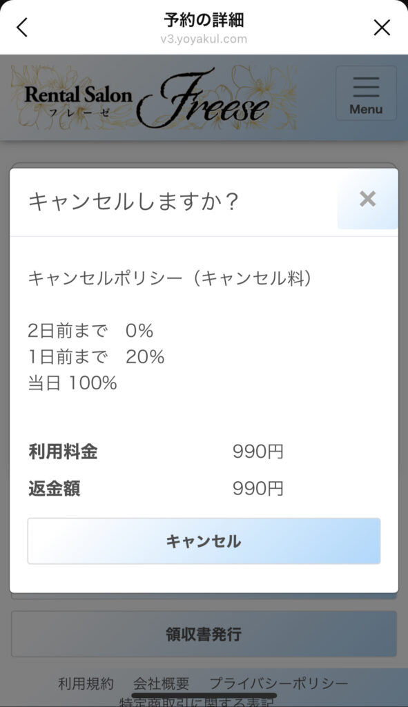 キャンセルポリシーに基づき、予約日の7日前からキャンセル料・変更料が発生しますので、予めご了承ください。